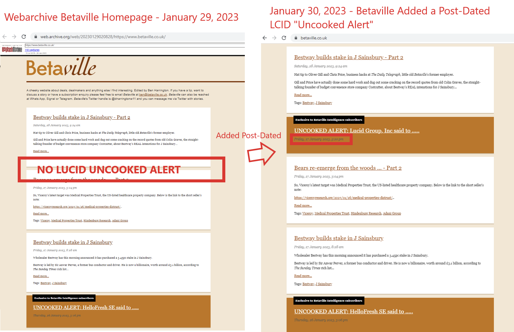 We are SHORT Lucid Group (LCID) as we think the source of Friday’s Saudi Public Investment Fund (PIF) rumor is likely FAKE.
