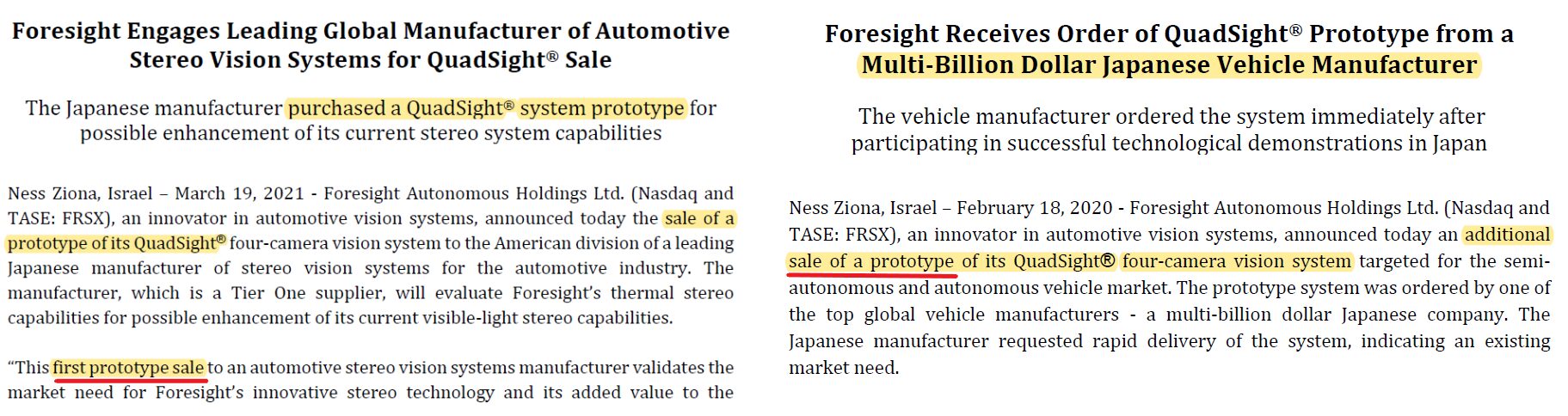 Recent hype at Foresight has been around a Quadsight prototype sale to a Japanese OEM (link).