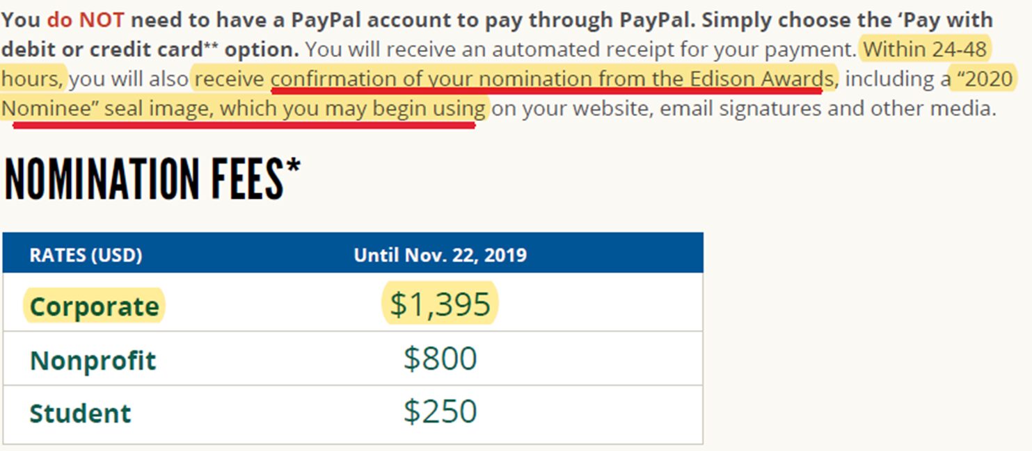Through our diligence we discovered Foresight has been PAYING for technology awards via the suspect industry of “Pay to Play” technology awards.