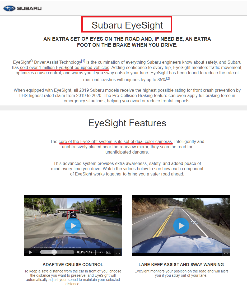 Unfortunately for FSRX investors one major Japanese OEM is already using their own advanced stereovision system called EyeSight. Subaru’s EyeSight system is not a prototype product though; it’s already deployed and is on the road in over 1 million Subaru vehicles since 2019.