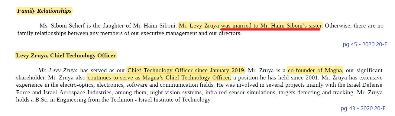 - Brother-In-Law as the New CTO – Magna’s only other executive officer and a beneficiary of these related party cash outflows happens to be Haim Siboni’s Brother-in-Law (pg 45). Levy Zruya (LinkedIn) became FRSX’s CTO in Jan 2019.