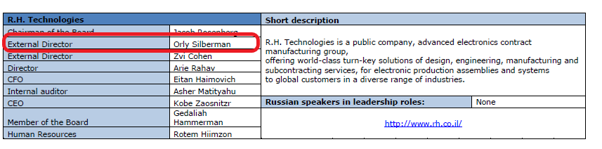 - We uncovered documents showing Silberman has a hand in controlling RH Electronics via a likely relative, Orly Silberman, who is a director of RH Electronics (RH Board on pg 69)
