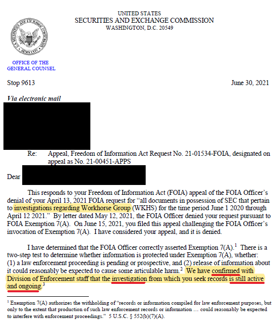 Workhorse Group has an active and on-going SEC investigation. A large part of their order book is fictitious including undisclosed related parties. New C-1000 EVs are riddled with design flaws and the EVs are already breaking down.